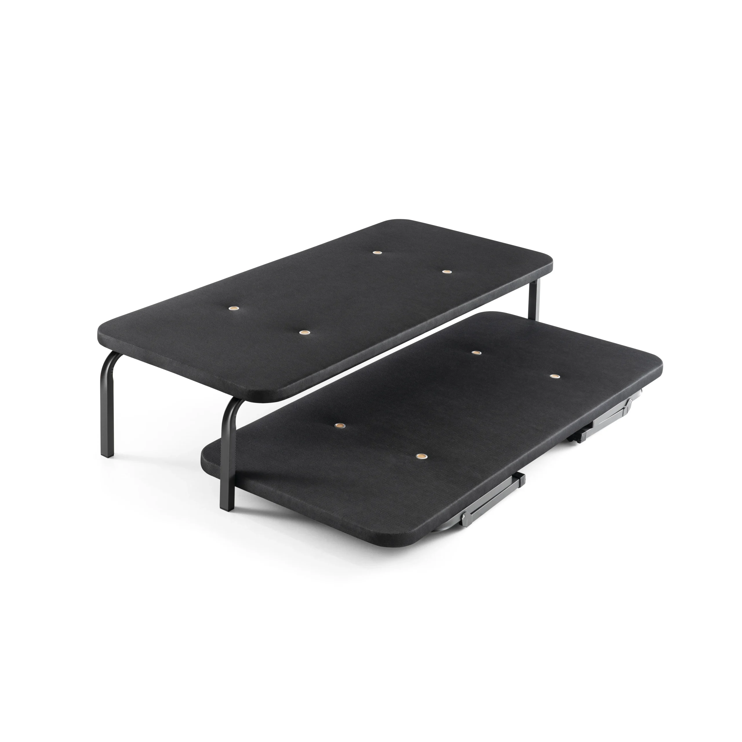 El Somier CANGURO TAPIZADO es una solución inteligente que combina una cama principal robusta con una supletoria extraíble, optimizando el espacio sin renunciar a la salud del colchón[cite: 26, 28].